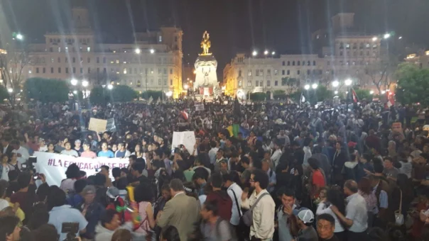 Más de la mitad de la Plaza San Martín está cubierta por manifestantes de diferentes colectivos, entre los que están el No a Keiko, Coordinadora Nacional de Derechos Humanos, Federación de Estudiantes de San Marcos y Católica, entre otros. La marcha está pactada para las 6 de la tarde y se da como respuesta a la censura contra el ministro de Educación Jaime Saavedra.
