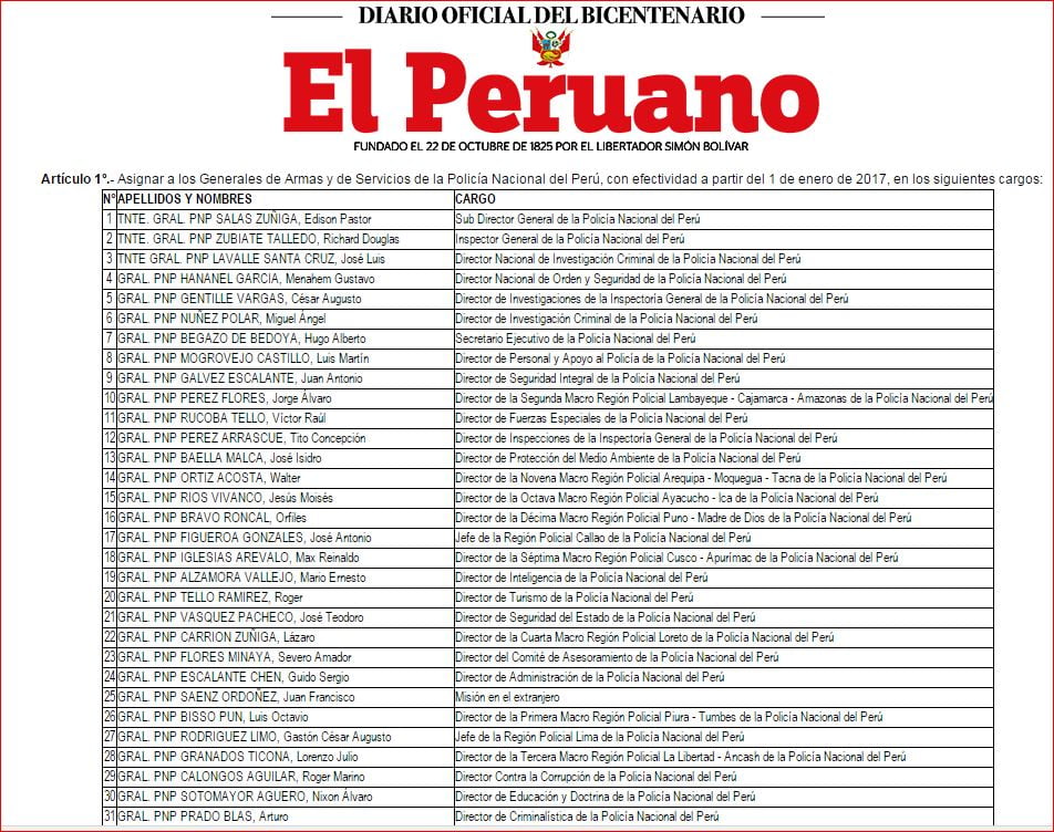 El general PNP Lorenzo Granados Ticona, según la Inspectoría General de la Policía; fue investigado por el supuesto uso indebido de vehículo oficial, cuando trabajo en la Dirección Antidrogas, en la ciudad de Lima.