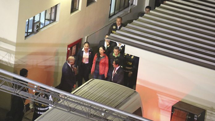 Humala y Heredia dejaron su casa en Surco a las 8:26 de la noche acompañados de su seguridad. Según explicaron sus abogados, Wilfredo Pedraza y Julio César Espinoza ambos están en el despacho del juez Carhuancho para ponerse a derecho.