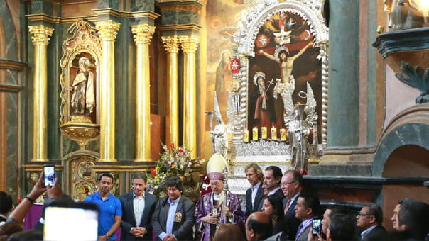 El director técnico de la selección peruana de fútbol, Ricardo Gareca, participó en una misa en la iglesia de las Nazarenas, en homenaje al Señor de los Milagros.