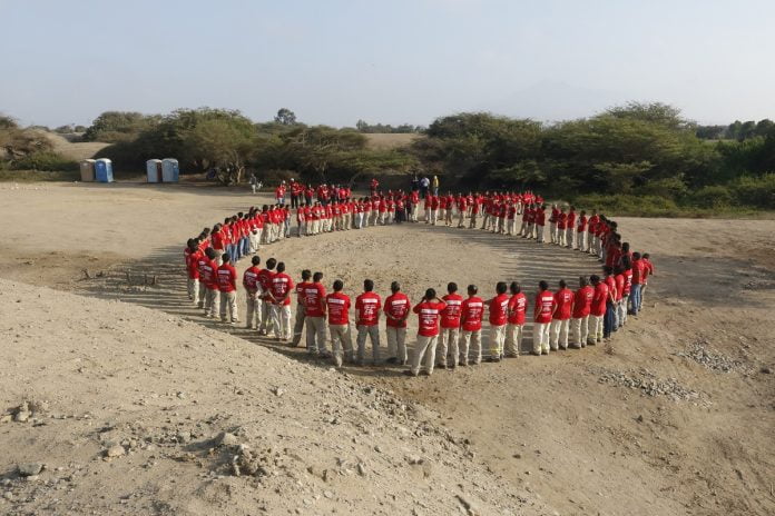 Más de 160 trabajadores de la Gerencia Regional de Salud, la Dirección Desconcentrada de Cultura de La Libertad y otras instituciones formaron una lazo gigante en la huaca Toledo del Complejo Arqueológico de Chan Chan con motivo de celebrarse el Día Internacional de la Acción contra el Sida.