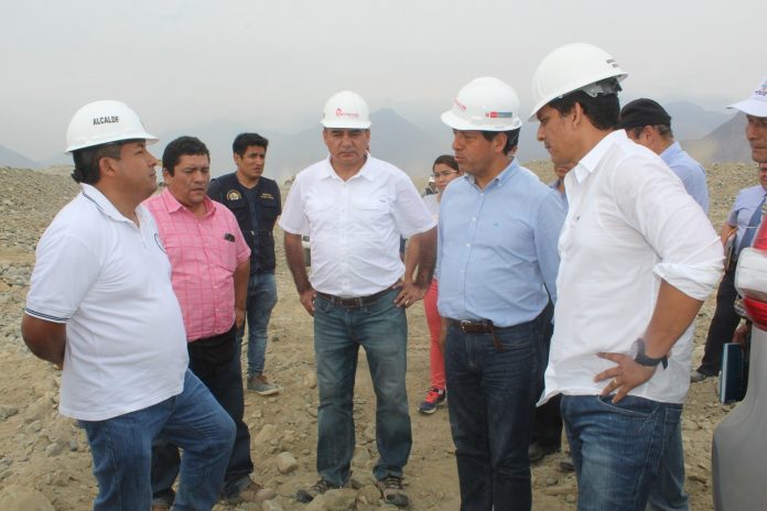 El director de la Autoridad para la Reconstrucción con Cambios, Edgar Quispe Remón, junto al alcalde distrital de Huanchaco, José Ruiz Vega y el gobernador regional de La Libertad, Luis Valdez Farías, inspeccionaron los trabajos de descolmatación en la quebrada El León, que ejecuta como unidad ejecutora la comuna distrital de Huanchaco.