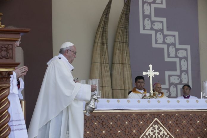 En la explanada de Huanchaco, el papa Francisco ofició una gran misa ante aproximadamente 300 mil personas.