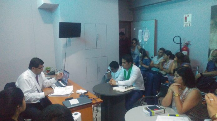 La audiencia se realizó en las instalaciones de la mencionada clínica donde permanece José Danilo Valerio Ulloa, conductor que en estado de ebriedad ocasionó el accidente donde fallecieron 3 integrantes de una misma familia y 8 personas resultaron heridas, la noche del último domingo en la vía de evitamiento, distrito de Víctor Larco, provincia de Trujillo, departamento de La Libertad.