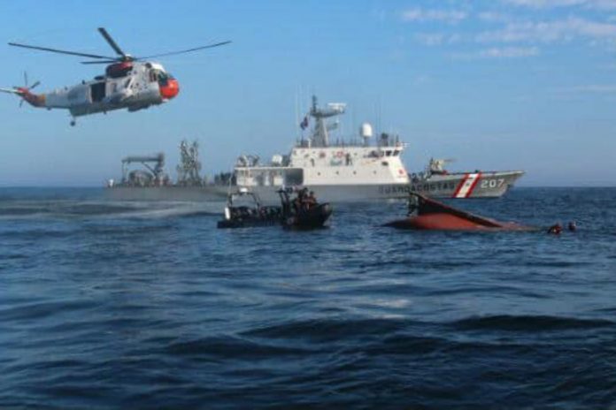 La Marina a través de la Autoridad Marítima dispuso el zarpe de unidades guardacostas, de superficie y helicópteros, llevando a bordo personal con equipos de buceo y salvamento.