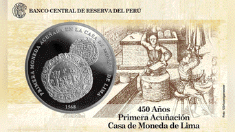 El Banco Central de Reserva del Perú (BCRP), lanzó la moneda de plata inspirada en los 450 años del primer ejemplar que fue acuñada en la Casa de la Moneda de Lima.