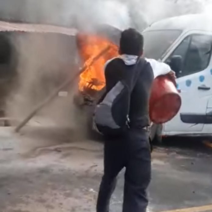 Una combi de la empresa “Pamelita” que cubre la ruta Trujillo – Huamachuco se incendió a la altura del sector de Con Con, en el caserío de Shirán, distrito de Poroto.