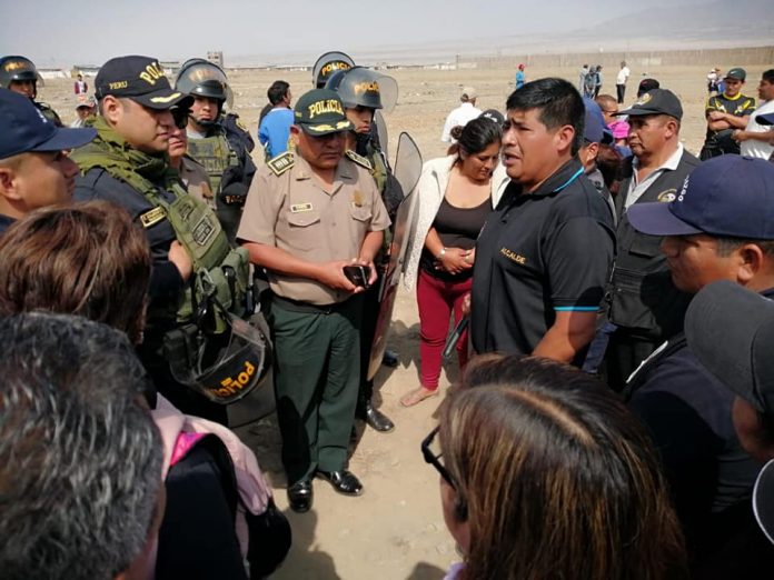 Agentes policiales de la Comisaría El Milagro y el alcalde de Huanchaco, Estay García, llegaron hasta la zona donde los moradores fueron sorprendidos cavando hoyos para levantar algunos ranchos.