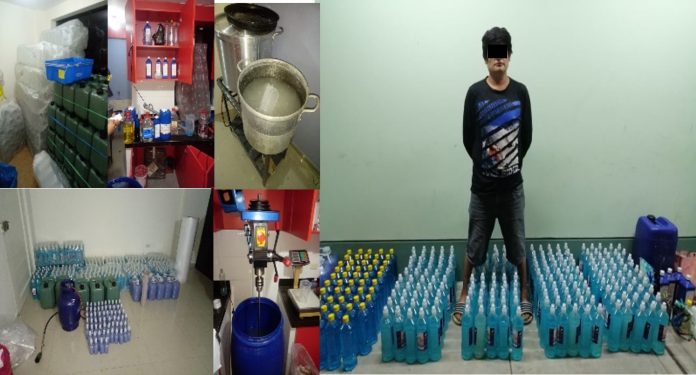 La policía realizó un operativo al interior de un inmueble donde se estaría fabricando, embotellando, sellando y comercializando productos como alcohol y jabón en gel, en forma indebida.