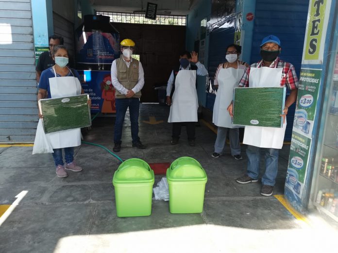 Así, se viene entregando pediluvios para desinfectar el calzado en las puertas de salida y entrada de cada centro de abasto, tachos de basura con bolsas de propileno para desperdicios en pasadizos y puertas, mandiles de plástico para cada puesto activo y gel desinfectante para los mercados de El Progreso, Liberación Social, Túpac Amaru, Buenos Aires norte, Santa Rosa de Vista Alegre, Santa Edelmira y Santa Rosa de Buenos Aires.