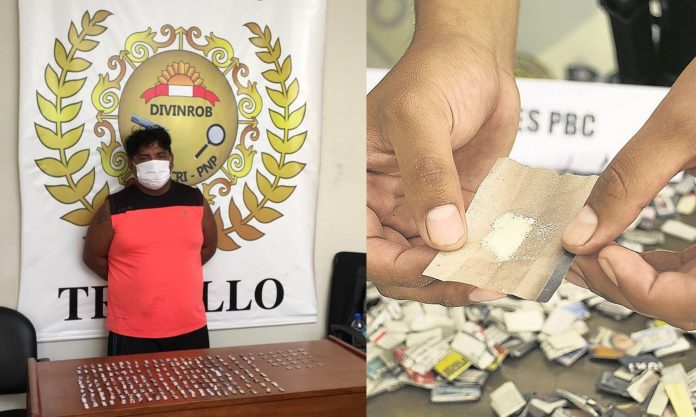 Santos Alexander Saavedra Mendoza (32), alias «Gordo Santos», fue capturado el último domingo en el A.H. Nuevo Porvenir, del distrito de El Porvenir. En su poder se halló 200 ketes de pasta básica de cocaína, 1 equipo celular y la suma de 25 soles.