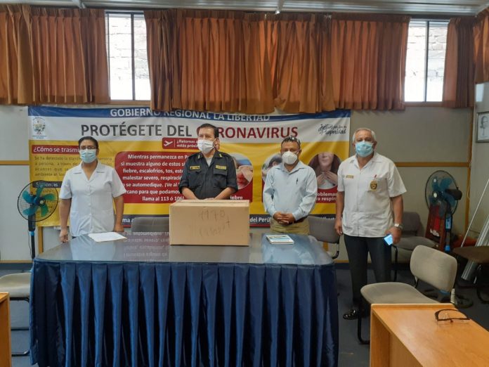 El Gobierno Regional La Libertad entregó esta mañana 500 pruebas rápidas a la Policía Nacional del Perú para la detección del COVID-19 en los agentes que están en la primera línea y son grupo de riesgo.