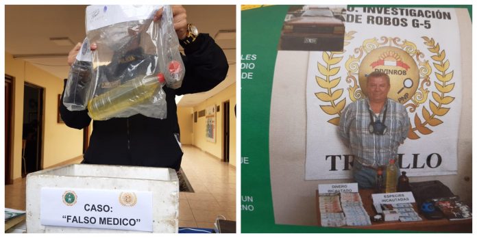 Agentes de la DIVINCRI detuvieron a un hombre de 54 años alias «Doctor Teo», quien aseguraba tener la cura contra el COVID-19 y cobraba 400 soles por entregar extraños remedios que no contaban con registro sanitario.