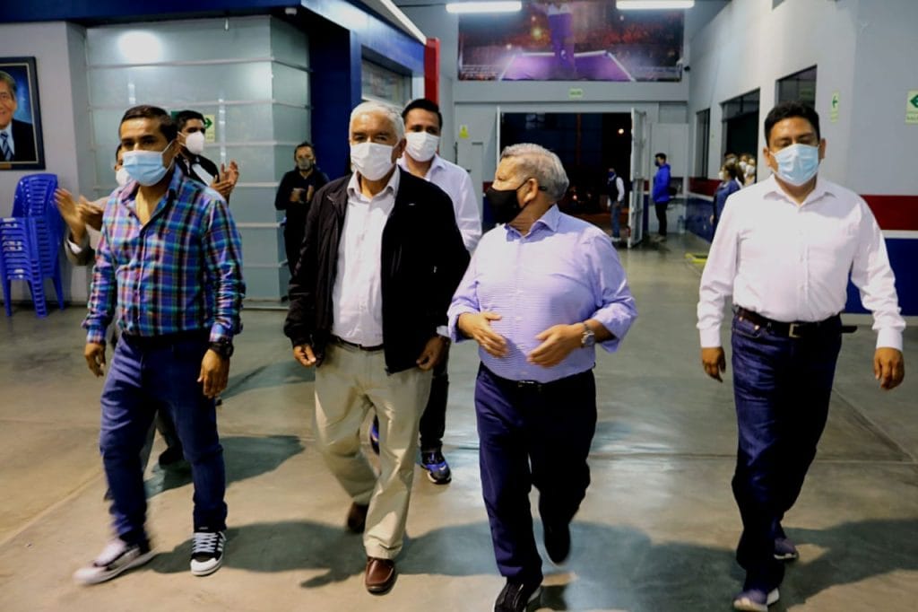 César Acuña y Héctor Acuña en plena conversación a la salida del local partidario de APP. El hermano del líder de APP, es la carta principal de la cúpula apepista para representarlos en el Congreso.