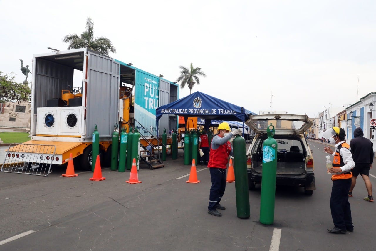 En casi dos meses de trabajo continuo, la planta móvil del oxígeno y los consultorios rodantes de la Municipalidad Provincial de Trujillo (MPT), vienen atendiendo en diferentes zonas de la ciudad y con grandes resultados. Hasta el momento, se recargaron más de 3 mil 800 balones y se prestaron más de 90 de los adquiridos por el municipio y ya se han realizado 3 mil 200 atenciones médicas.