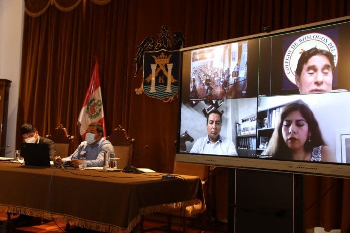 Fue en una reunión virtual convocada por el alcalde de Trujillo, José Ruiz Vega, en la que estuvieron presentes los representantes de los colegios profesionales vinculados al sector salud (Químico Farmacéutico, Médico, Biólogos, y Enfermeros), donde se detallaron las acciones desplegadas por el municipio trujillano para enfrentar la segunda ola del Coronavirus; recepcionándose también los aportes técnicos de los profesionales de la salud, a fin de optimizar las políticas sanitarias emprendidas desde la MPT.