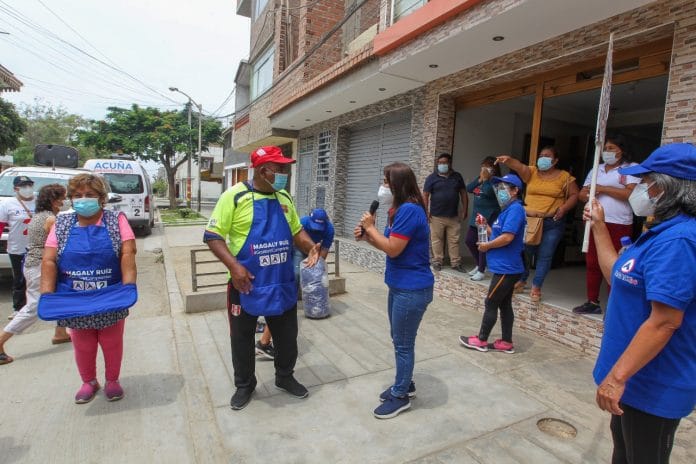 La candidata con el N°2 de Alianza Para el Progreso (APP), Magaly Ruíz sostuvo una breve, pero fructífera reunión con los comerciantes del Mercado Temporal La Rinconada quienes, a raíz de la llegada de la segunda ola de la pandemia con la COVID-19, se mantienen preocupados ante la aplicación de una posible cuarentena total en La Libertad, que los detendría de la reactivación económica