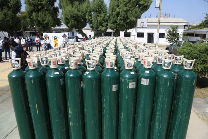 Luego de anunciar la compra de 1,00 balones de oxígeno, el gobernador regional de La Libertad, Manuel Llempén Coronel, distribuyó oficialmente los primeros 500 cilindros recargados con el vital elemento a los diversos establecimientos de salud de la región.