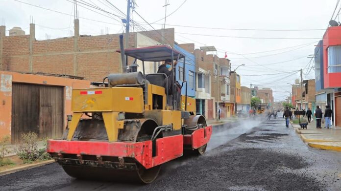 La Municipalidad Distrital de Laredo continúa realizando los trabajos de mejoramiento vial y recapeo de la calle «San José», en la cual se está colocando una carpeta completa de asfalto en caliente de 5 cm de espesor, para una mayor durabilidad de la vía.