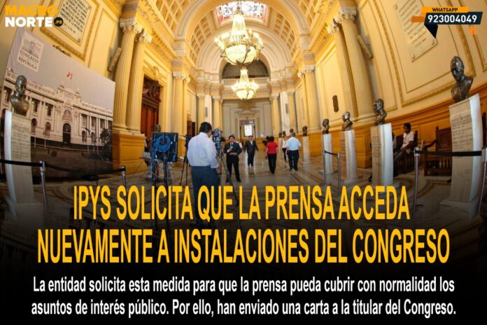 El Instituto Prensa y Sociedad (IPYS) exigió a la presidenta del Congreso, María del Carmen Alva, que la prensa vuelva a tener acceso a las instalaciones del Palacio Legislativo para que cubran con normalidad los asuntos de interés público.