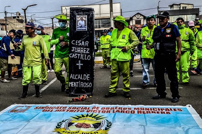 Este 30 de diciembre, trabajadores de la División de Áreas Verdes y Jardines de la Municipalidad Distrital de Víctor Larco Herrera, realizaron un segundo plantón exigiendo el pago de sus bonos colectivos y otros requerimientos.