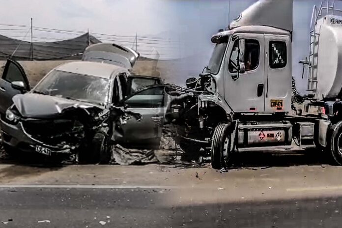 Una camioneta con matrícula T3C – 431 colisionó frontalmente contra una cisterna que transportaba combustible con placa de rodaje T6W – 878.