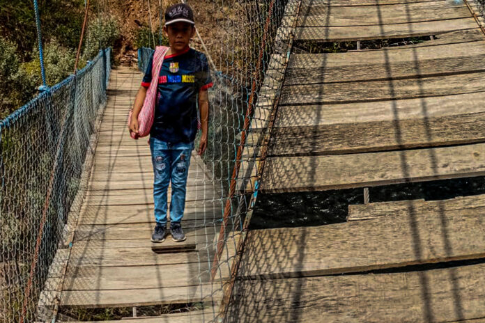 Señalan que a diario los niños y adultos mayores arriesgan sus vidas al momento de cruzar por este puente, que une Compín con Sauna y Chacrashina.