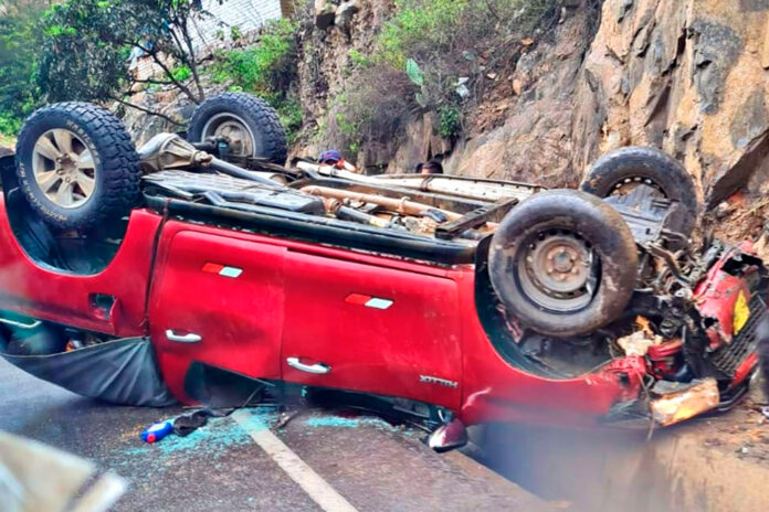 Se trata de una camioneta doble cabina que por circunstancias aún desconocidas terminó dando vueltas de campana y quedó en medio de la carretera.