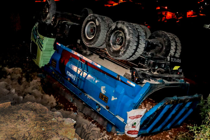 Un nuevo accidente de tránsito se registró en la sierra liberteña. El ultimo miércoles 5 de julio, en horas de la noche, un volquete marca Volvo de placa de rodaje COI 861. propiedad de la empresa Inversiones Forestales B&E SRL, se dio vuelta en la carretera que va hacia el centro poblado El Palomar, en el distrito de Salpo, provincia de Otuzco.