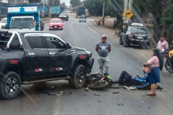 Esta tarde, se registró un accidente de tránsito entre una camioneta y una moto lineal, en la carretera que une Trujillo con la sierra liberteña.