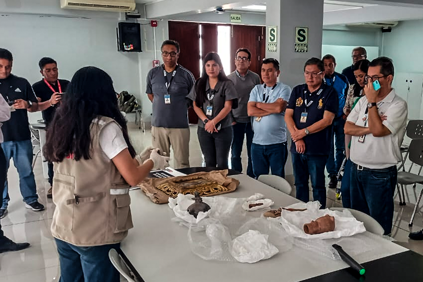 Al día siguiente, en el local de la Intendencia de Aduanas de Salaverry, en la ciudad de Trujillo, especialistas de la DRE capacitaron en una sesión teórico- práctica, a oficiales y personal técnico de dicha dependencia descentralizada de la Sunat, sobre los mecanismos que desarrolla el Ministerio de Cultura para el control del tráfico ilícito de bienes culturales muebles y su recuperación. Además, instruyeron a los asistentes en la identificación de piezas arqueológicas, con énfasis en las que son más susceptibles de ser traficadas ilícitamente.