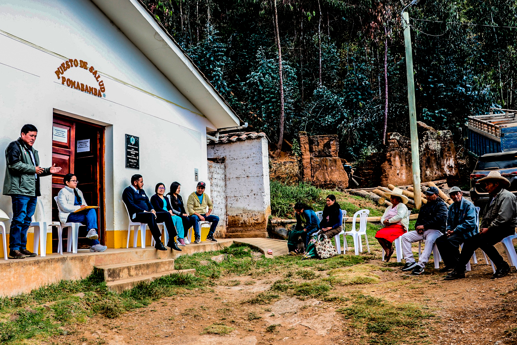 El alcalde distrital de Sartimbamba, Robert Arteaga Contreras, junto al director ejecutivo de la Red de Salud Sánchez Carrión, Gerardo Florián Gómez, y la jefa de la Red de Salud de Sartimbamba, Brissy Valderrama, acudieron al Puesto de Salud de Pomabamba para reunirse con las autoridades locales y población, con la finalidad de unir esfuerzos y lograr la ansiada categorización del referido establecimiento de salud.