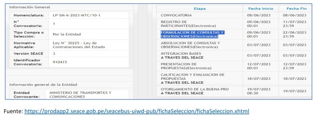 El biólogo pesquero indicó que la licitación pública de contratación para la ejecución de la referida obra, al revisar sus extensos documentos del expediente técnico (de más de 7,000 páginas), sus bases y TdR tienen deficiencias desde la redacción y de fondo, que una entidad internacional seria, de prestigio y con experiencia en regenerar playas no iba a tener el tiempo de revisarlos a detalle con un análisis técnico, legal y financiero; para advertir la consistencia entre ellos, por los plazos muy cortos de la licitación pública, como por ejemplo, con menos de dos semanas para hacer consultas y observaciones (9 al 22 de junio) y con un poco más de un mes para hacer la oferta.