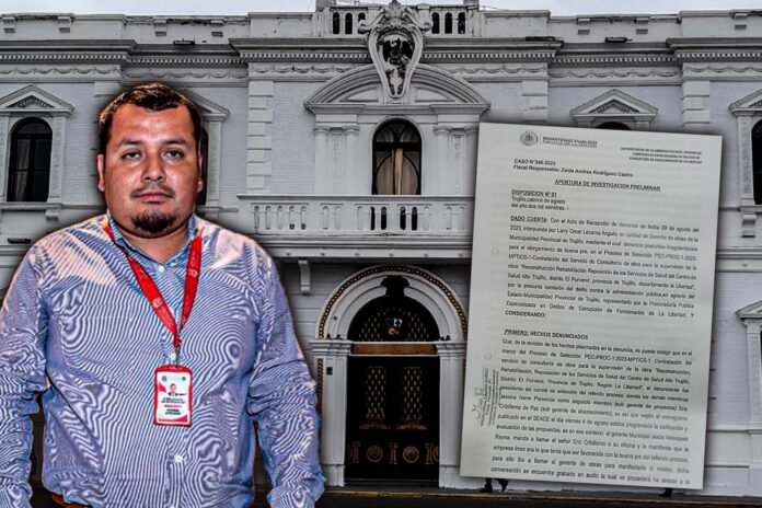 El último 9 de agosto, el exgerente de Obras de la Municipalidad Provincial de Trujillo, Larry Lezama Angulo, ingresó al Ministerio Público una denuncia presuntas irregularidades para el otorgamiento de buena pro, en el proceso de selección PEC-PROC-1-2023-MPT/CS-1, “Reconstrucción, rehabilitación, reposición de los servicios de Salud del Centro de Salud Alto Trujillo, distrito El Porvenir, provincia de Trujillo, región La Libertad”, por la presunta comisión del delito contra la administración pública, en agravio del Estado – MPT.