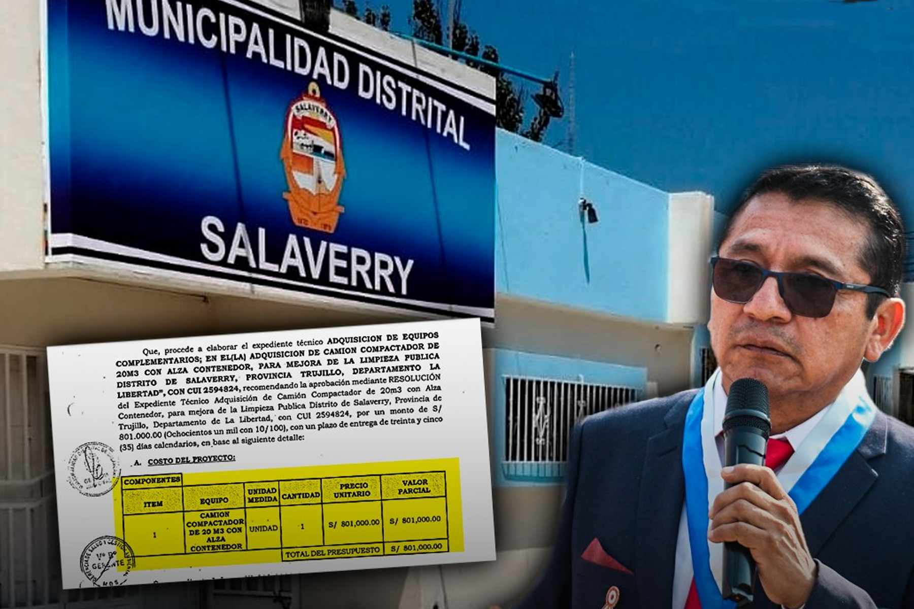 El pasado 22 de septiembre, la gestión del alcalde Carlos Arroyo hizo pública la convocatoria para la compra de un camión compactador de 20 m³ con alza contenedor, para la mejora de la limpieza pública. Lo que genera suspicacias y dudas en esta licitación pública es el precio del vehículo, ya que la Municipalidad Distrital de Salaverry ha previsto que la adquisición de la unidad vehicular demandará una inversión total de S/ 801,000.00, monto exorbitante que estaría por encima de los costos del mercado local.