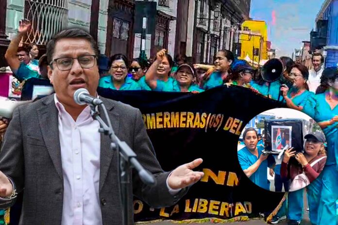 Por su parte, la secretaria del sindicato de Enfermeras del Iren Norte, Karim Castañeda, señaló que el Minsa no ha gestionado con el Ministerio de Economía y Finanzas la transferencia de 18 mil millones de soles para cumplir con el último tramo salarial, por lo que está afectando a más de 50 mil profesionales de la Salud.