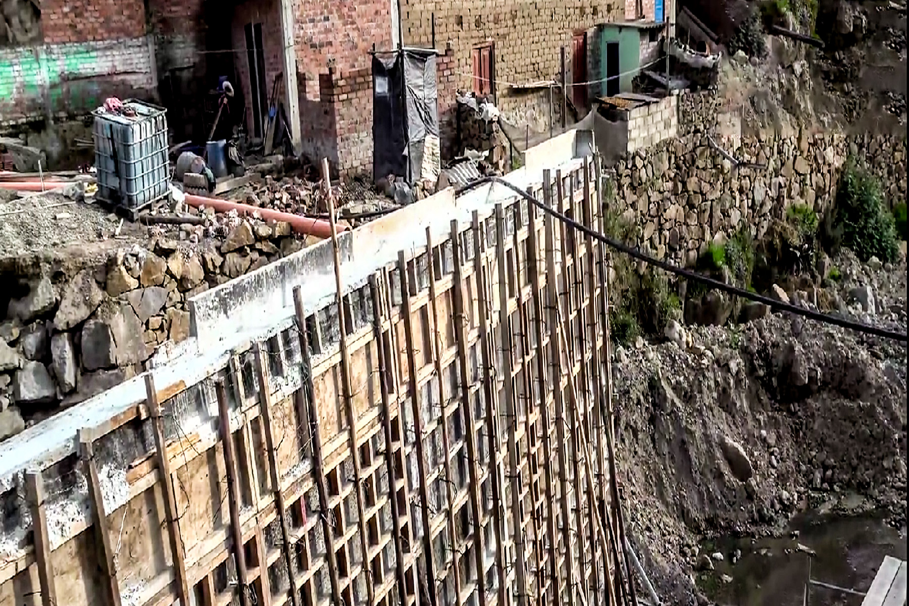 “Queremos la presencia del alcalde para que se manifieste y diga porque han hecho ese diseño o el estudio técnico que ellos han mandado a la empresa que ejecute, que no esta acorde a la realidad. Vemos que la empresa ya se retira y vemos que el muro ya está llenado y están desencofrando para tal vez hacer entrega de la obra, pero no está conforme. El alcalde es el directo responsable, que está al mando de todo esto, sin embargo, no lo vemos por acá, además, no vemos que su gestión esté yendo por buen camino, hasta ahora vemos que su gestión es pésima”, señalaron a la prensa.