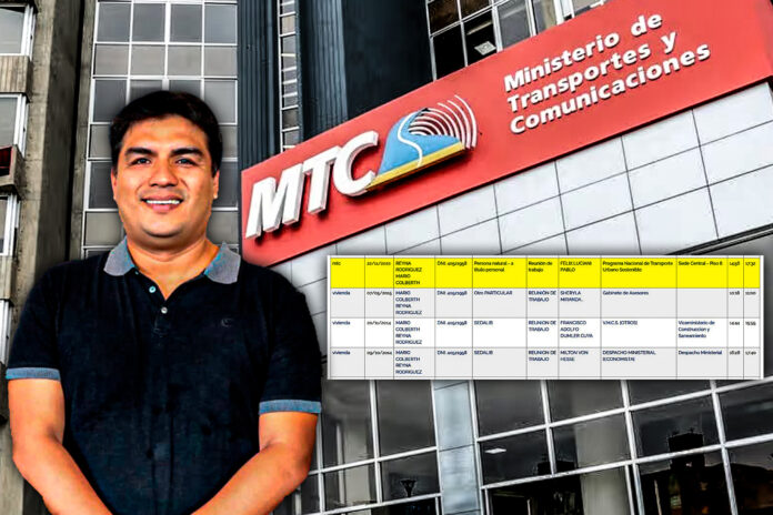 Macronorte.pe accedió al registro de visitas del Ministerio de Transportes y Comunicaciones (MTC), donde se corroboró que el teniente alcalde de la provincia de Trujillo, Mario Reyna Rodríguez, visitó este despacho el año pasado.