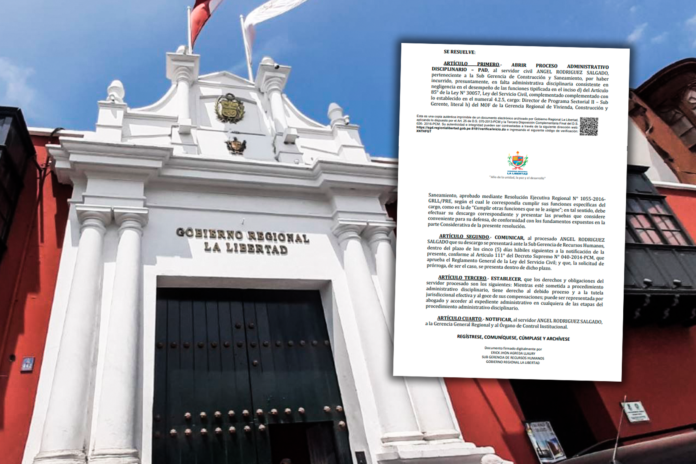 Ángel Rodríguez Salgado, subgerente de Construcción y Saneamiento del Gobierno Regional de La Libertad (GRLL), será sometido a un Proceso Administrativo Disciplinario (PAD), por incurrir en una presunta negligencia en el cumplimiento de sus funciones.