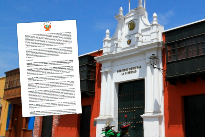En esa línea, se designó a Jobvito Flores Mariños como nuevo gerente regional de Administración en condición de funcionario de confianza, bajo el alcance del Régimen de Contratación Administrativa de Servicios (CAS).