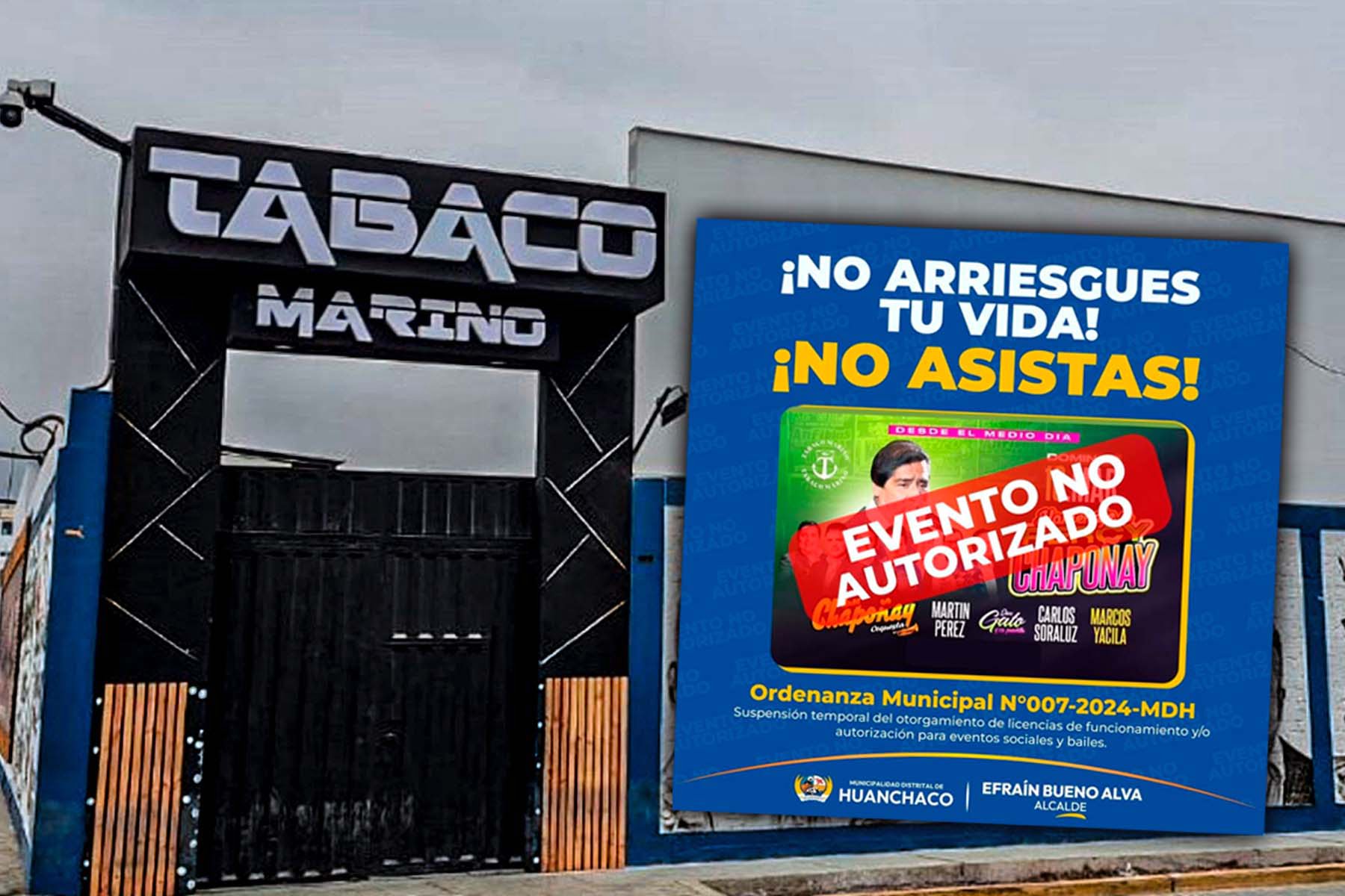 La Municipalidad Distrital de Huanchaco recomienda a la ciudadanía no asistir al evento no autorizado del local Tabaco Marino, anunciado para este domingo 10 de marzo.