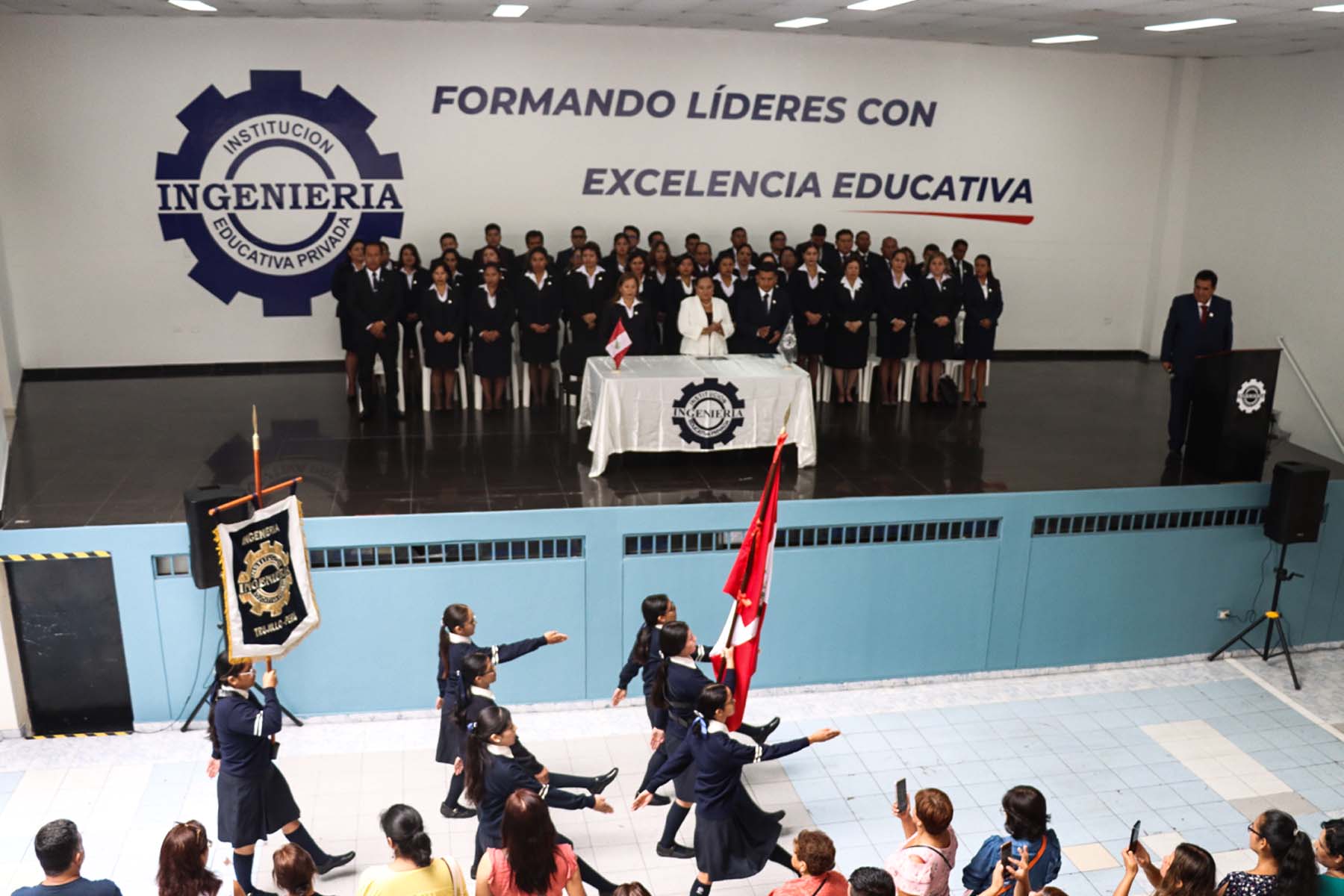 La Institución Educativa Ingeniería dio inicio a su año académico 2024 en una ceremonia que contó con la participación de la directora general, Dra. Rosa Núñez Campos, la plana docente, padres de familia y alumnos este lunes 11 de marzo.