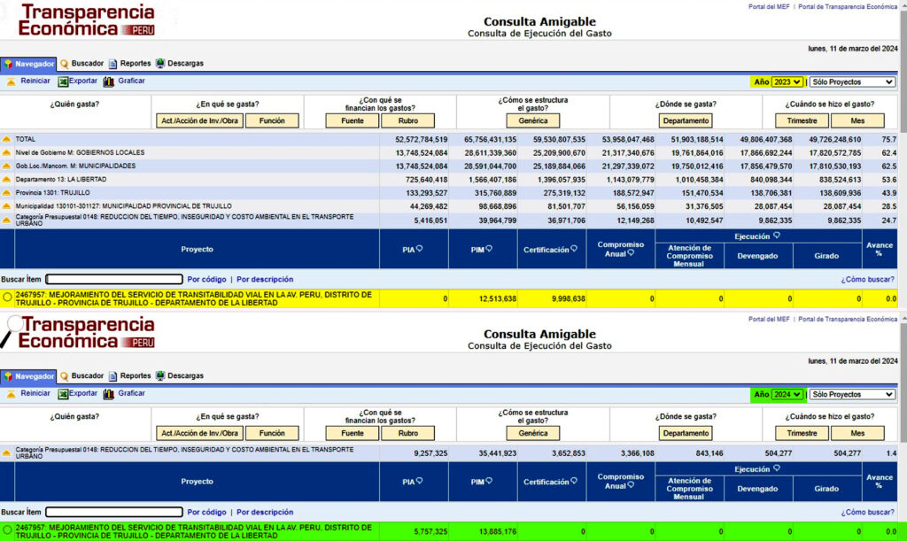 Es preciso indicar que esta obra en la gestión del suspendido alcalde de Trujillo, Arturo Fernández, estuvo valorizada cerca a los 10 millones de soles; sin embargo, en la actual gestión de Mario Reyna, está aumentó a más de 13 millones de soles, de acuerdo a las cifras del portal Consulta Amigable del Ministerio de Economía y Finanzas.