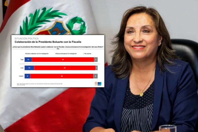 Según una reciente encuesta de Ipsos Perú, el 85 % de los peruanos consideró que la presidenta de la República, Dina Boluarte, busca entorpecer la investigación del caso relojes Rolex.