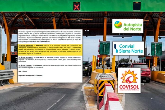 Mediante Acuerdo Regional N°000039-GRLL-CR, el Consejo Regional de La Libertad acordó solicitar a la Dirección General de Concesiones en Transportes del Ministerio de Transportes y Comunicaciones (MTC), los contratos y adenda de las concesiones de las empresas Convial Sierra, Autopista del Norte y Autopista del Sol, encargadas del cobro de peajes en distintos puntos de la región La Libertad.