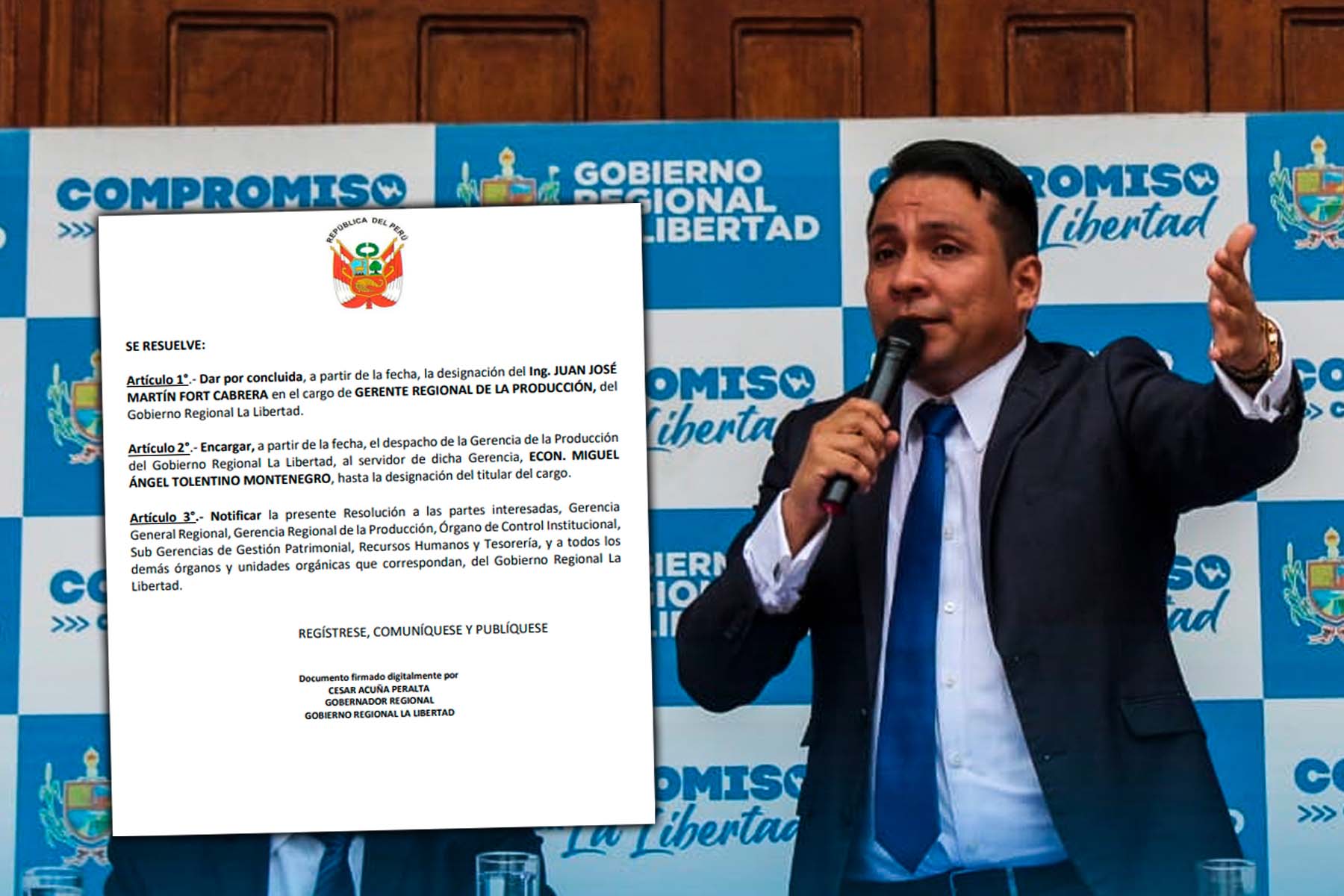 Mediante Resolución Ejecutiva Regional N°000214-2024-GRLL-GOB, el Gobernador Regional de La Libertad (GRLL), César Acuña Peralta, dio por concluida la designación de Juan José Fort en el cargo de gerente de Producción.