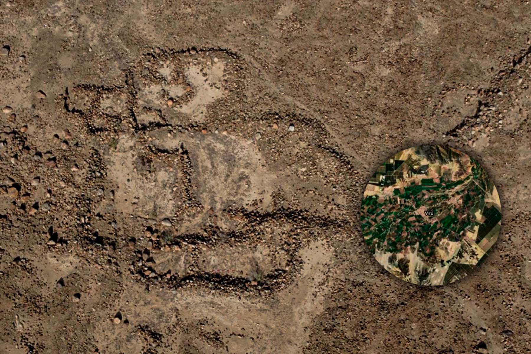El uso de moderna tecnología en el proceso de investigación ha permitido a arqueólogos peruanos encontrar un geoglifo que estaría asociado a pozos mochica para captar agua en el extenso valle de Virú, en La Libertad, donde gran parte de la evidencia de la existencia de los pueblos prehispánicos se pierde entre los campos de cultivo en los que las empresas agroindustriales cosechan arándanos, paltas, espárragos, alcachofas, entre otros.
