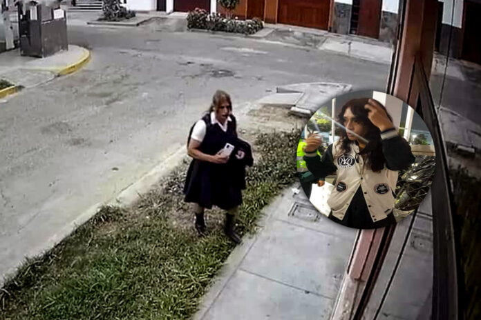 Como se había informado, en las imágenes se apreciaba al sujeto uniformado con falda, blusa y chaleco escolar, quien habría estado acosando a estudiantes en la citada urbanización.