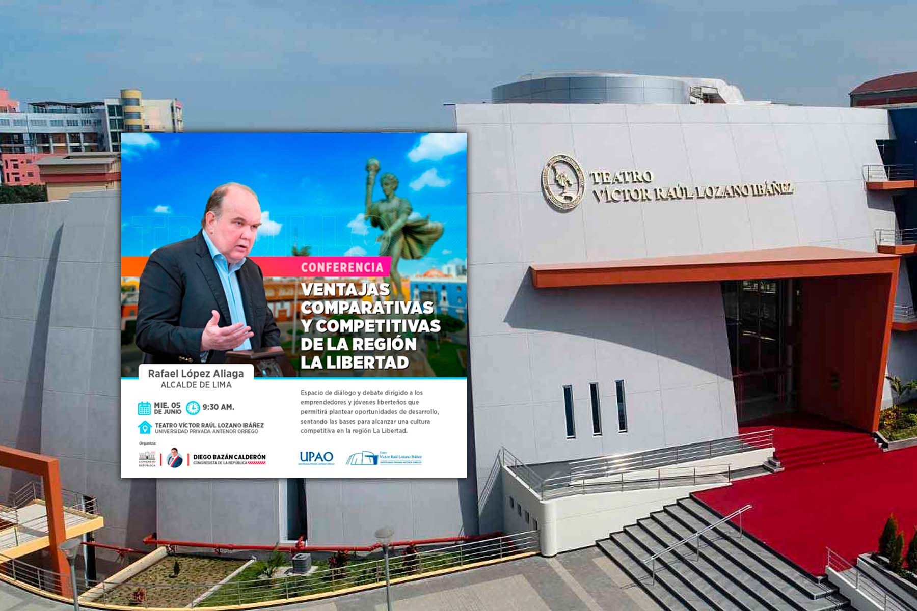 El cuestionado alcalde de Lima, Rafael López Aliaga, brindará el próximo 5 de junio una conferencia sobre las ventajas comparativas y competitivas de la región La Libertad.