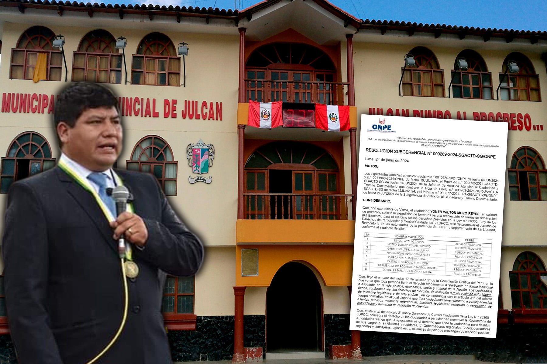 La Oficina Nacional de Procesos Electorales (ONPE), mediante Resolución Subgerencial N° 269-2024-SGACTD-SG/ONPE, declaró procedente la solicitud de Yoner Mozo para adquirir el kit electoral de revocatoria contra el alcalde de la provincia de Julcán, Tarsis Reyes Castillo, así como de siete regidores.